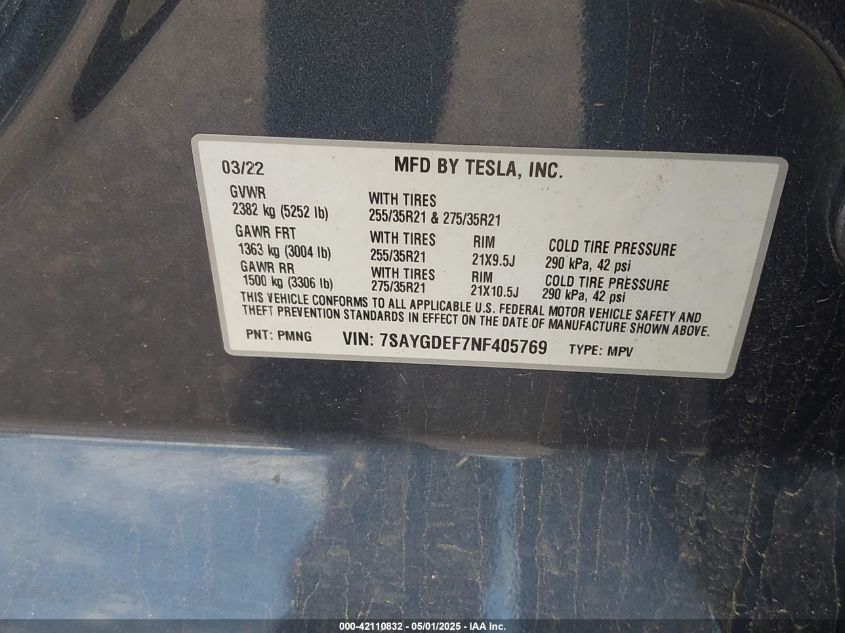 2022 TESLA MODEL Y - 7SAYGDEF7NF405769, колір - Сірий, U, Електричний, Повний привід із США