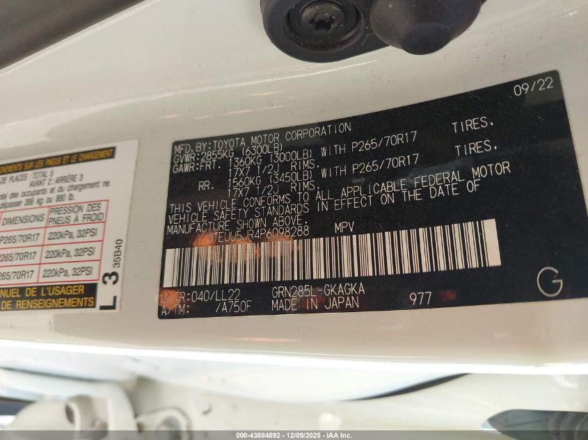 Колір БілийЦиліндри 6Привід Повний привідVIN JTEUU5JR4P6098288Стан СтаціонарноУшкодження Ліва сторона