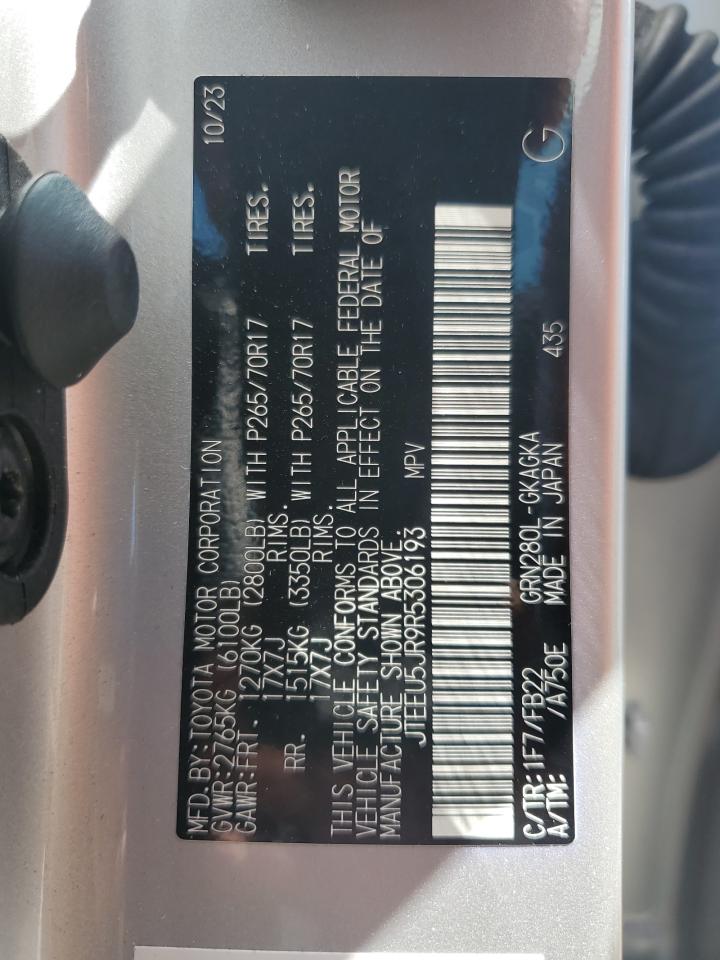 2024 TOYOTA 4RUNNER - JTEEU5JR9R5306193, колір - Срібний, 4.0, Бензин, Задній привід із США