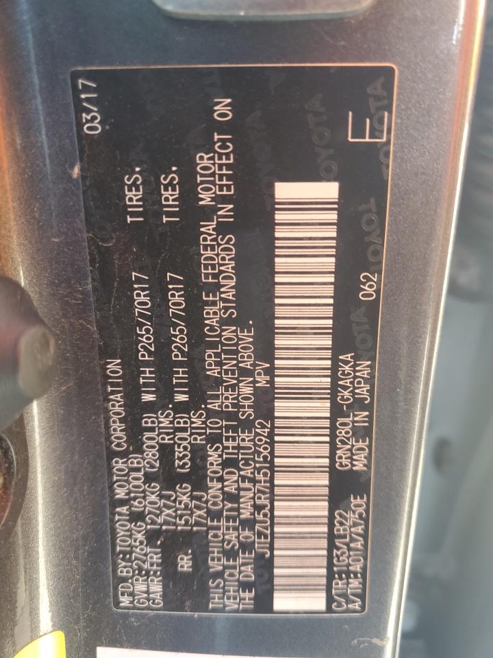 2017 TOYOTA 4RUNNER - JTEZU5JR7H5156942, колір - Сірий, 4.0, Бензин, Задній привід із США