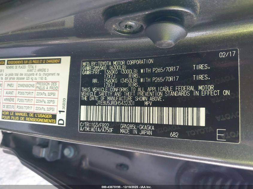 2017 TOYOTA 4RUNNER SR5/SR5 PREMIUM