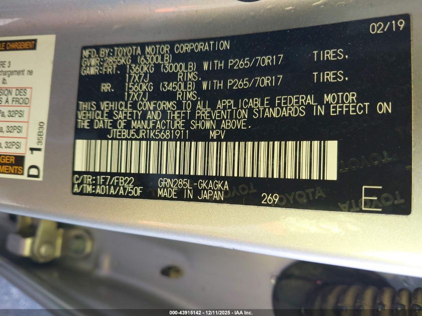 Колір СрібнийЦиліндри 6Привід Повний привідVIN JTEBU5JR1K5681911Стан Заводиться та їде (перевірено)Ушкодження Передня або задня