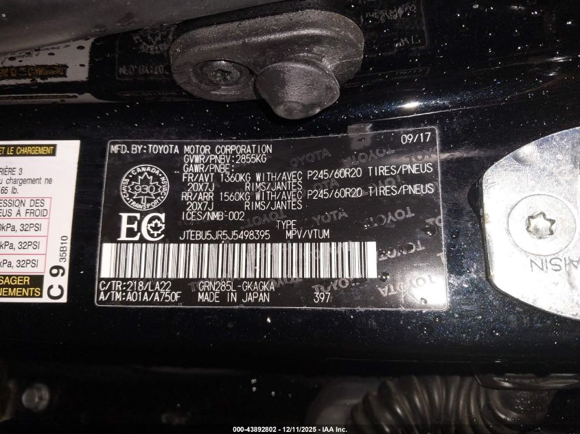 2018 TOYOTA 4RUNNER SR5/SR5 PREMIUM