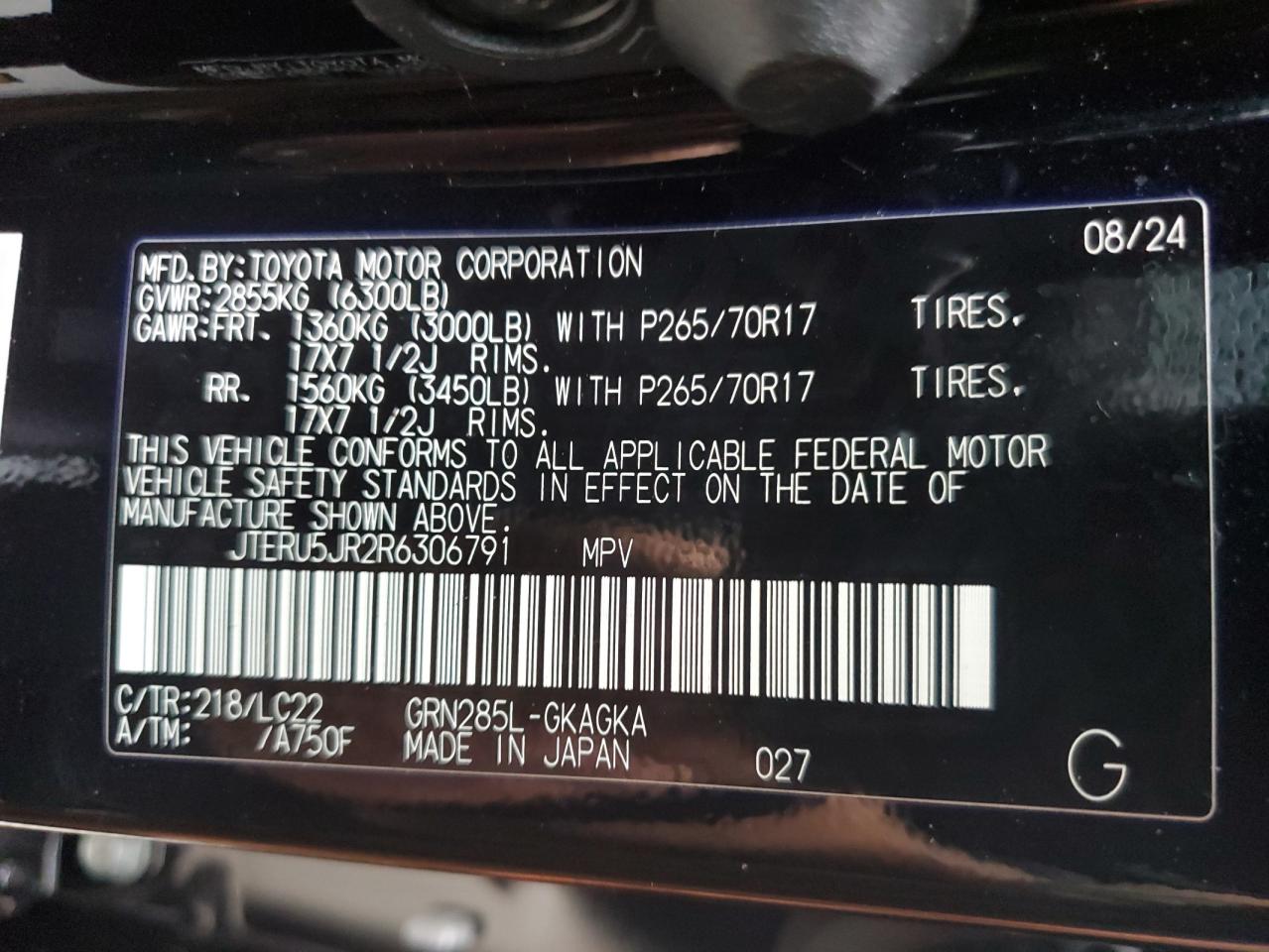 2024 TOYOTA 4RUNNER - JTERU5JR2R6306791, колір - Чорний, 4.0, Бензин, 4x4 з заднім приводом із США