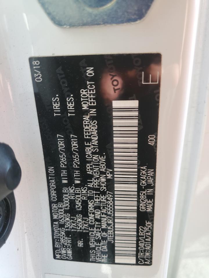 2018 TOYOTA 4RUNNER - JTEBU5JR7J5558497, колір - Білий, 4.0, Бензин, 4x4 з заднім приводом із США