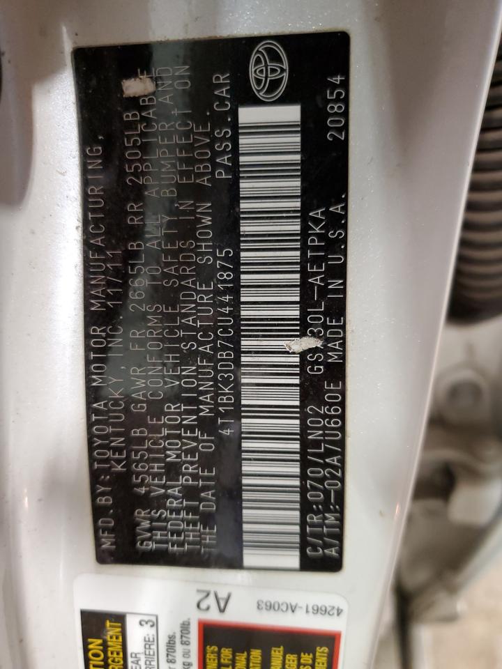 2012 TOYOTA AVALON - 4T1BK3DB7CU441875, колір - Білий, 3.5, Бензин, із США