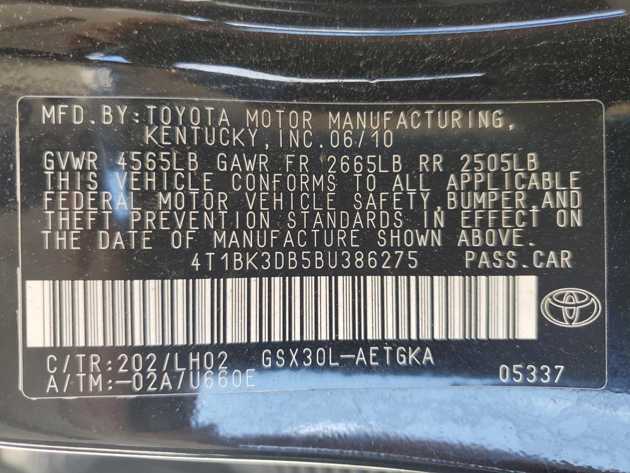 2011 TOYOTA AVALON - 4T1BK3DB5BU386275, колір - Чорний, 3.5, Бензин, із США