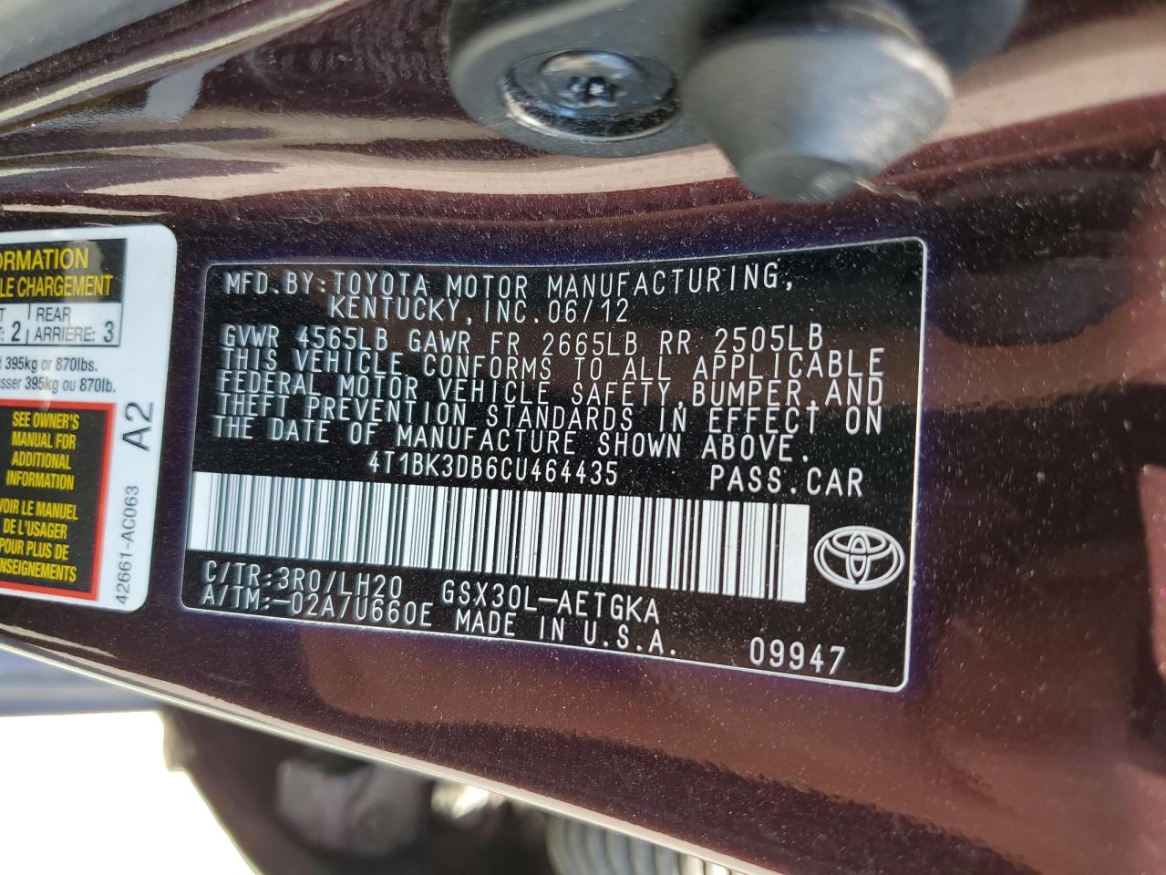 2012 TOYOTA AVALON - 4T1BK3DB6CU464435, колір - Бургундія, 3.5, Бензин, із США