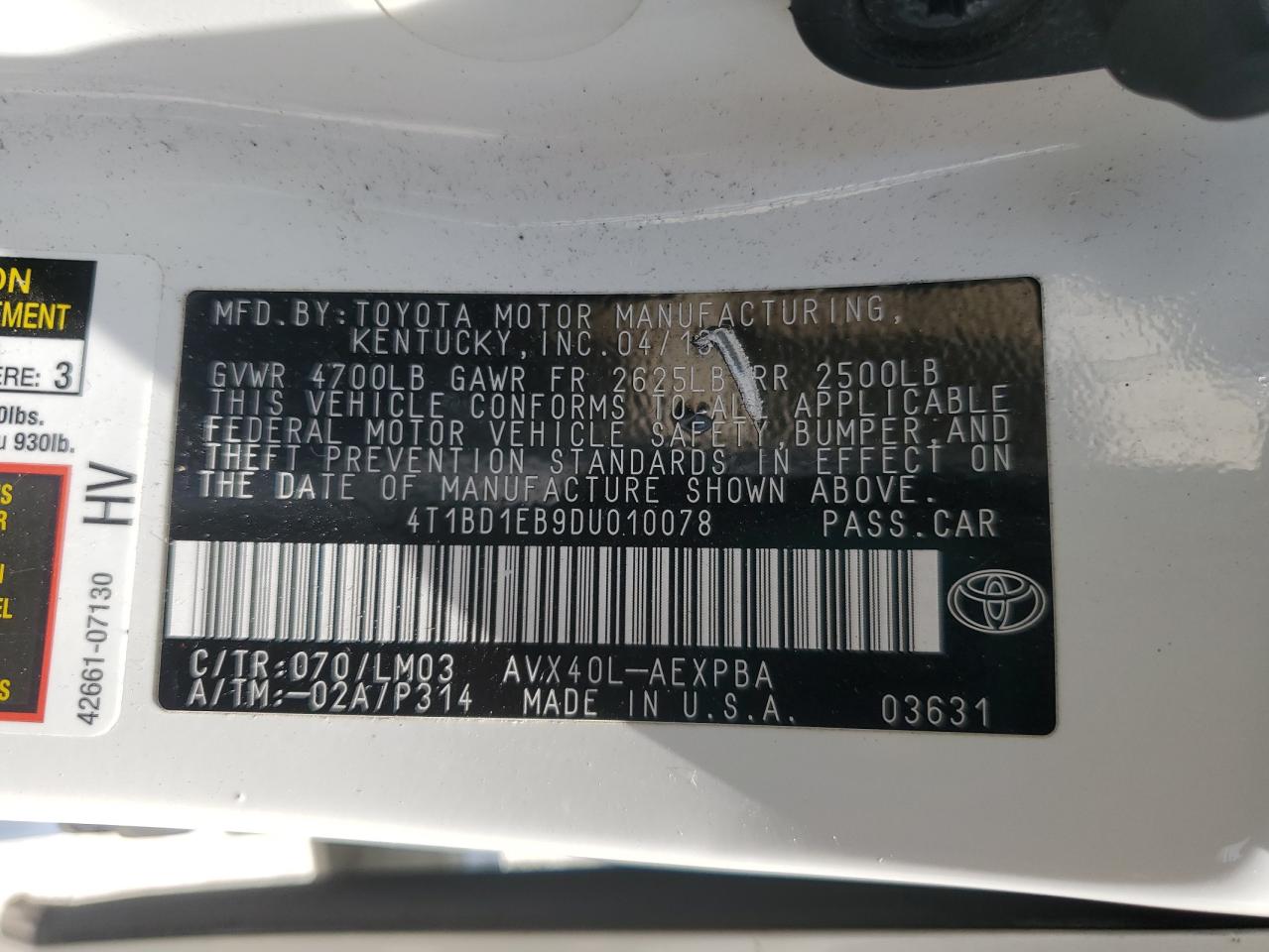 2013 TOYOTA AVALON - 4T1BD1EB9DU010078, колір - Білий, 2.5, Гібрид, із США