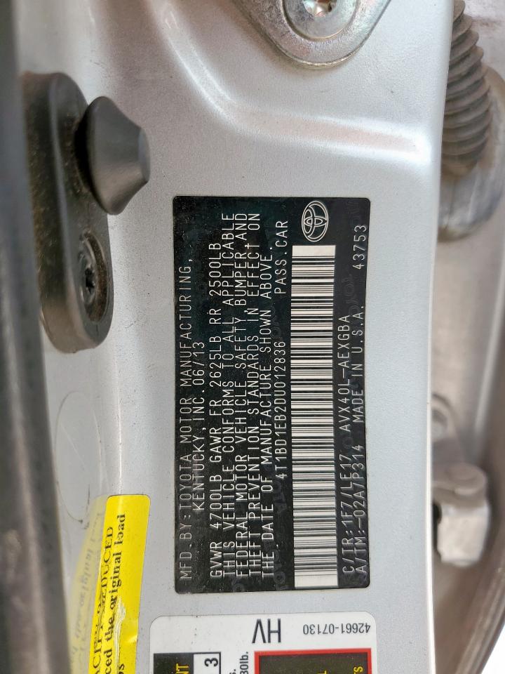 2013 TOYOTA AVALON - 4T1BD1EB2DU012836, колір - Срібний, 2.5, Гібрид, із США