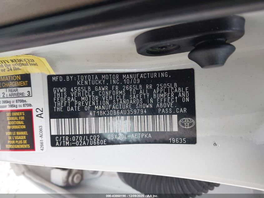 2010 TOYOTA AVALON - 4T1BK3DB6AU359794, колір - Білий, 3.5, Бензин, Передній привід із США