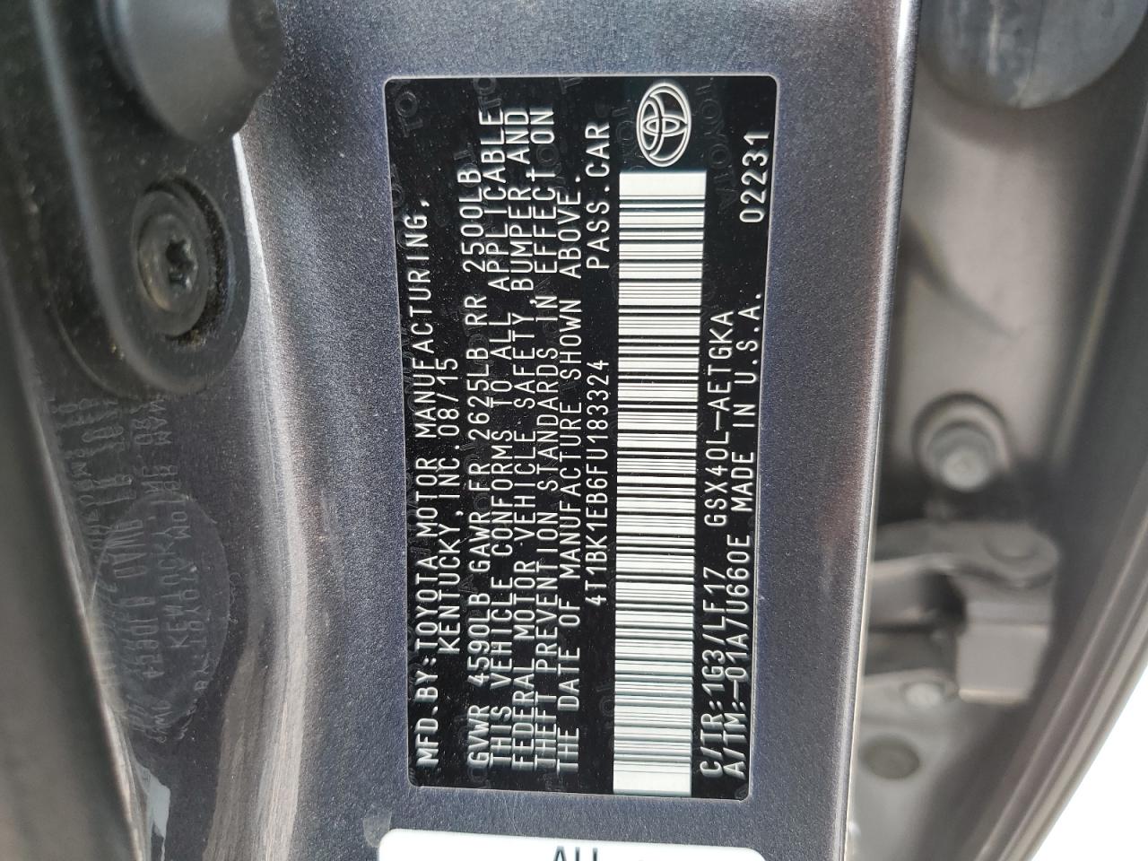 Колір СірийЦиліндри 6VIN 4T1BK1EB6FU183324Стан Заводиться та їде (перевірено)Ушкодження ЗадняДата аукціона 2025-10-07