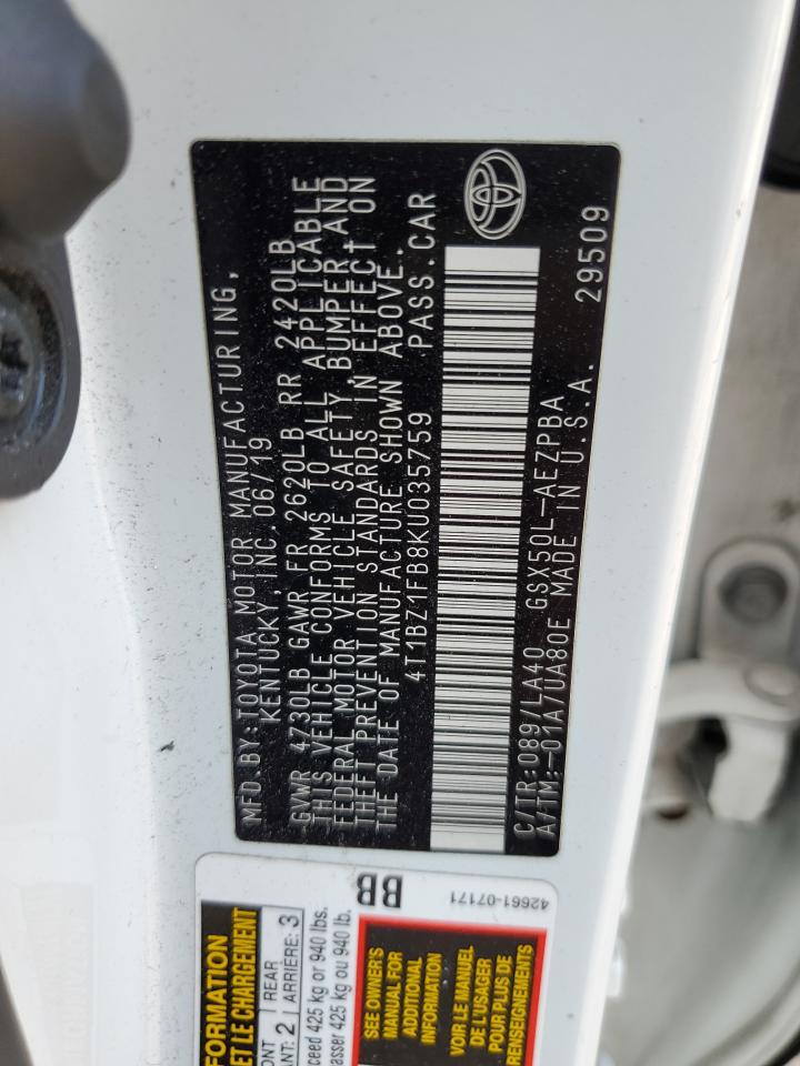2019 TOYOTA AVALON - 4T1BZ1FB8KU035759, колір - Білий, 3.5, Бензин, із США