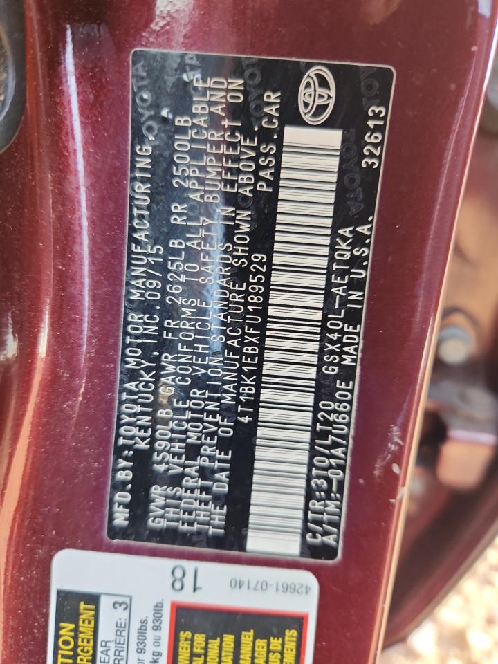 2015 TOYOTA AVALON - 4T1BK1EBXFU189529, колір - Бургундія, 3.5, Бензин, із США