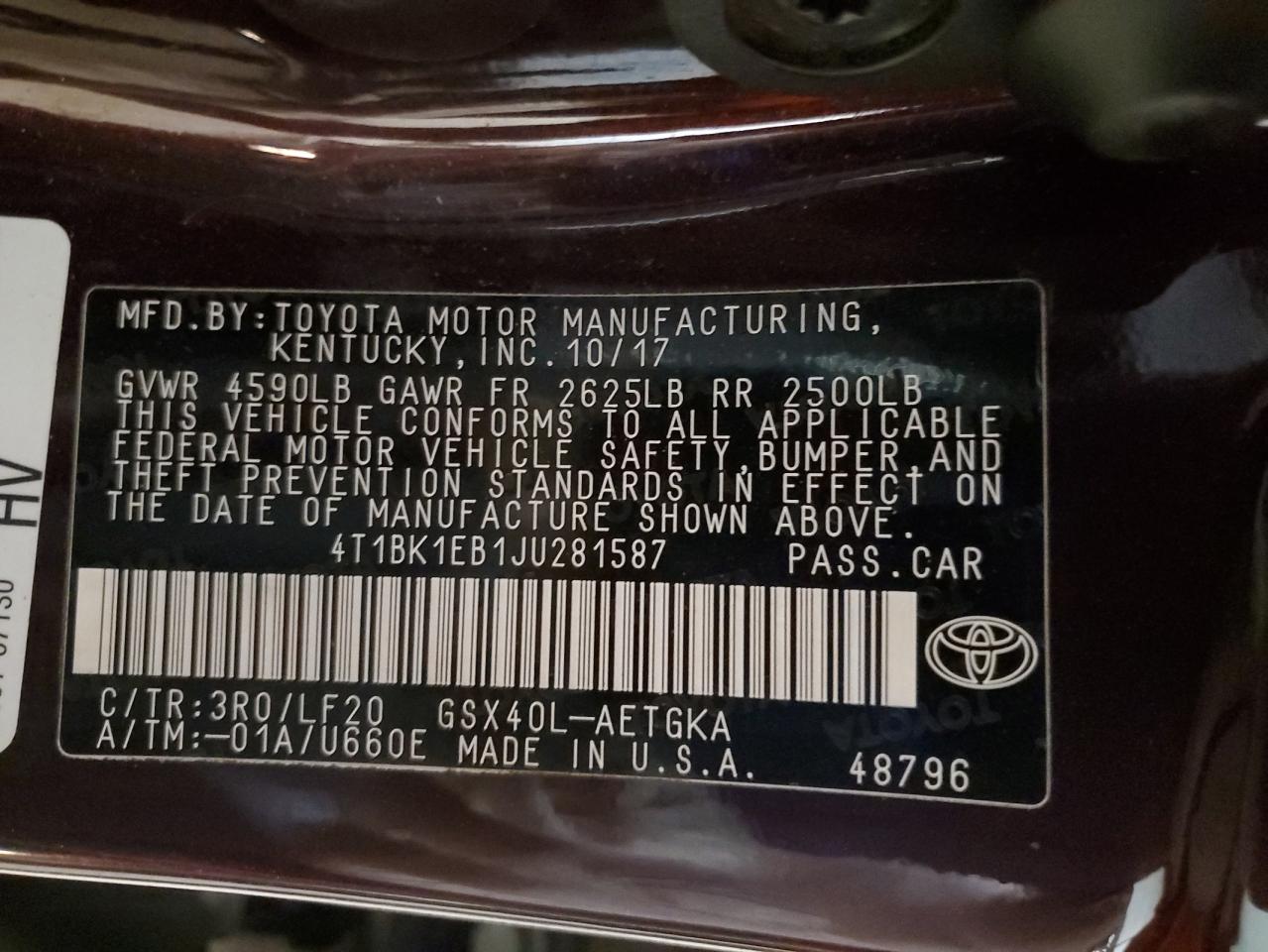 Колір БургундіяЦиліндри 6VIN 4T1BK1EB1JU281587Стан Заводиться та їде (перевірено)Ушкодження Передня або задняДата аукціона 2025-10-07