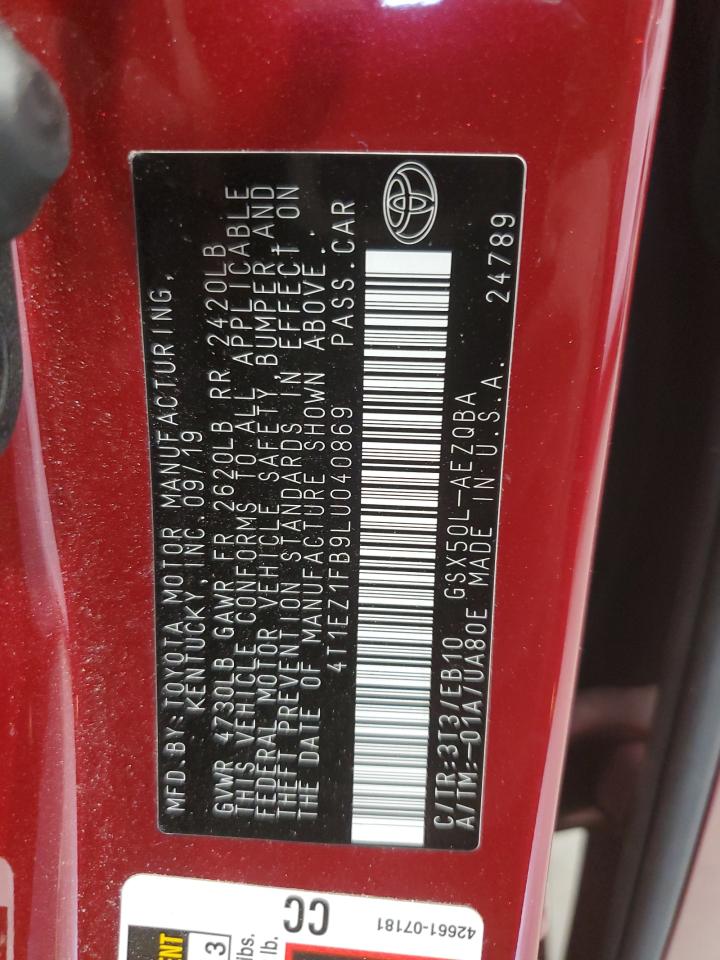 2020 TOYOTA AVALON - 4T1EZ1FB9LU040869, колір - Бургундія, 3.5, Бензин, із США