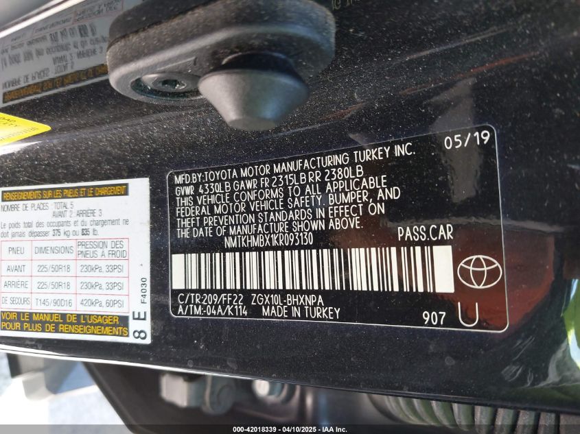 Колір ЧорнийЦиліндри 4Привід Передній привідVIN NMTKHMBX1KR093130Стан Заводиться та їде (перевірено)Ушкодження Звичайний зносДата аукціона 2025-11-11