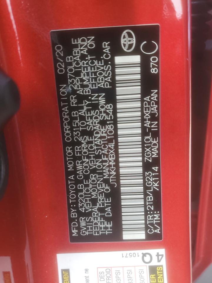 Колір ЧервонийЦиліндри 4VIN JTNKHMBX4L1081548Стан ЗаводитьсяУшкодження Передня або задняДата аукціона 2025-10-07