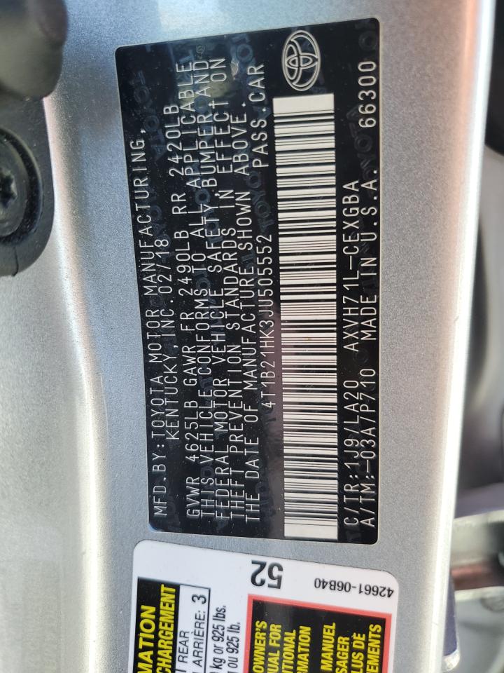 2018 TOYOTA CAMRY HYBRID - 4T1B21HK3JU505552, колір - Срібний, 2.5, Гібрид, із США