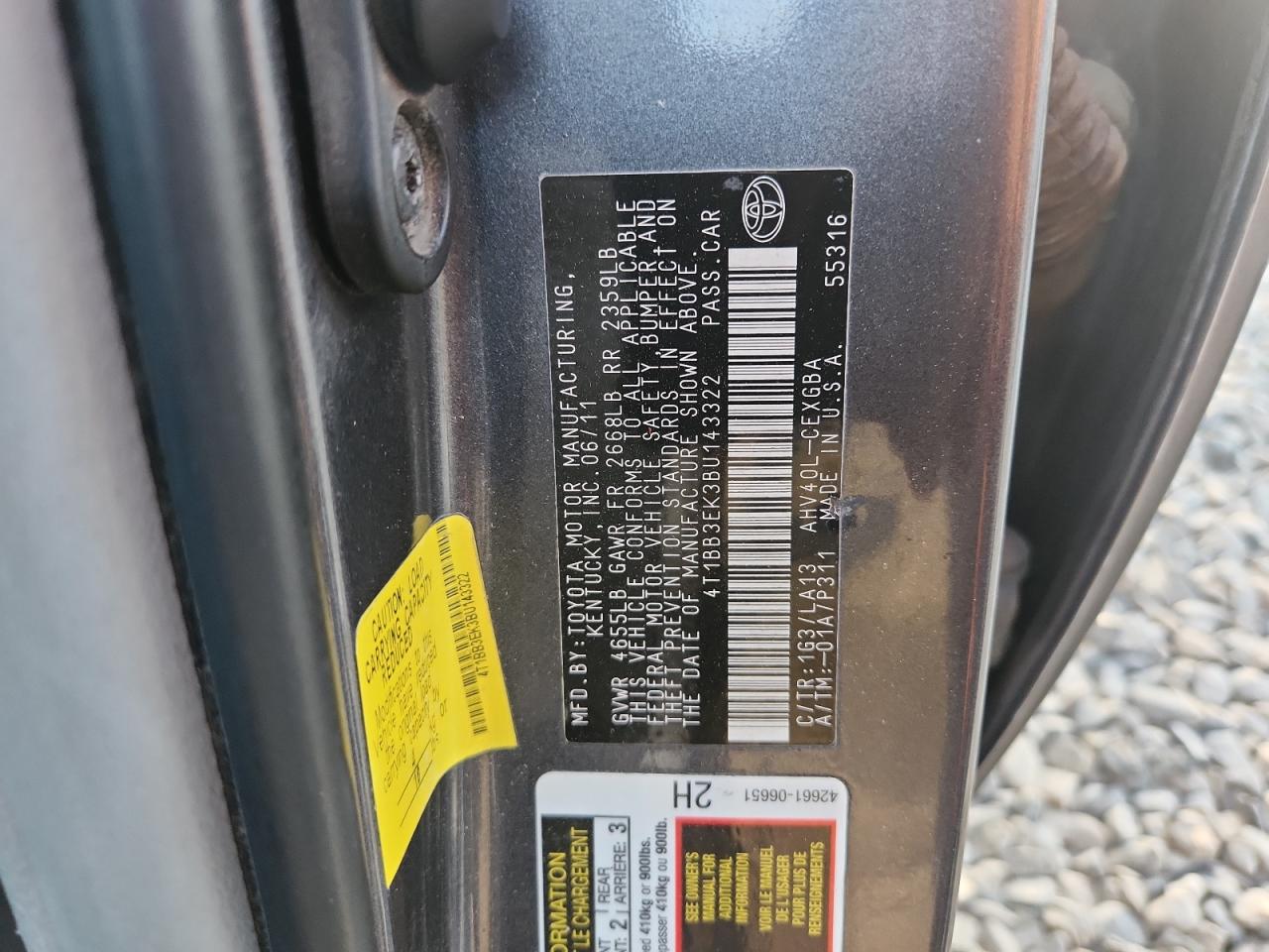 2011 TOYOTA CAMRY HYBRID - 4T1BB3EK3BU143322, колір - Сірий, 2.4, Гібрид, із США