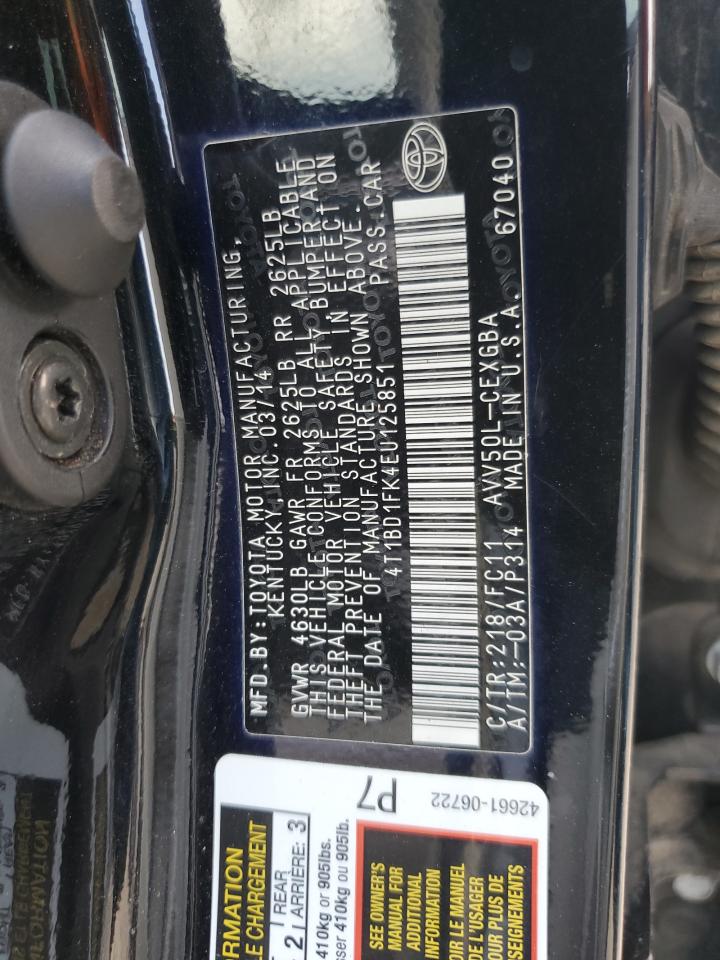2014 TOYOTA CAMRY HYBRID - 4T1BD1FK4EU125851, колір - Чорний, 2.5, Гібрид, із США