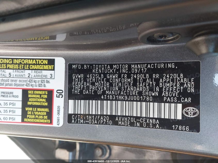 2018 TOYOTA CAMRY HYBRID - 4T1B31HK9JU001780, колір - Сірий, 2.5, Гібрид, Передній привід із США
