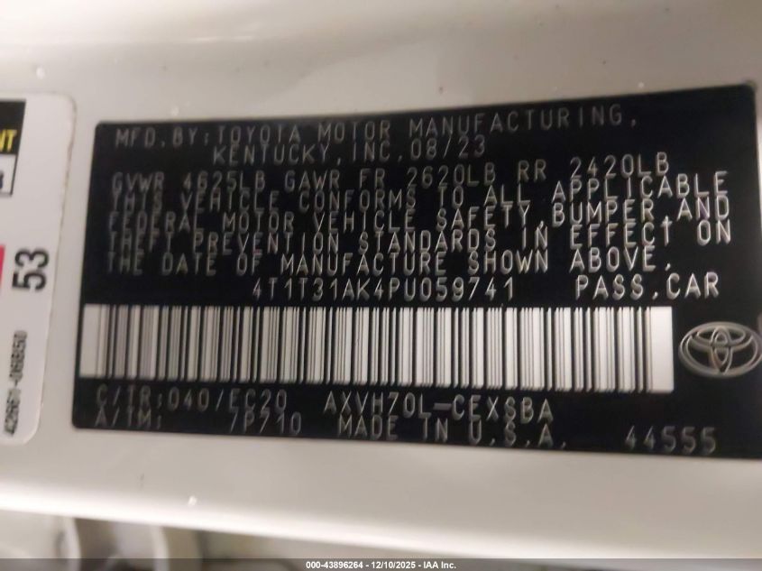 2023 TOYOTA CAMRY HYBRID - 4T1T31AK4PU059741, колір - Білий, 2.5, Гібрид, Передній привід із США