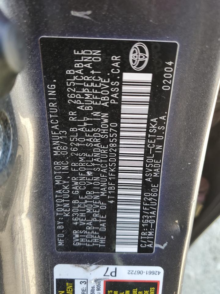 2013 TOYOTA CAMRY - 4T1BF1FK5DU285570, колір - Сірий, 2.5, Бензин, із США