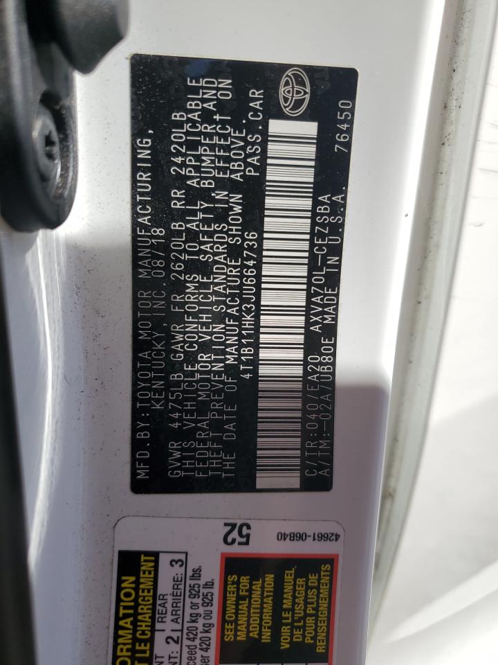 2018 TOYOTA CAMRY - 4T1B11HK3JU664736, колір - Білий, 2.5, Бензин, із США