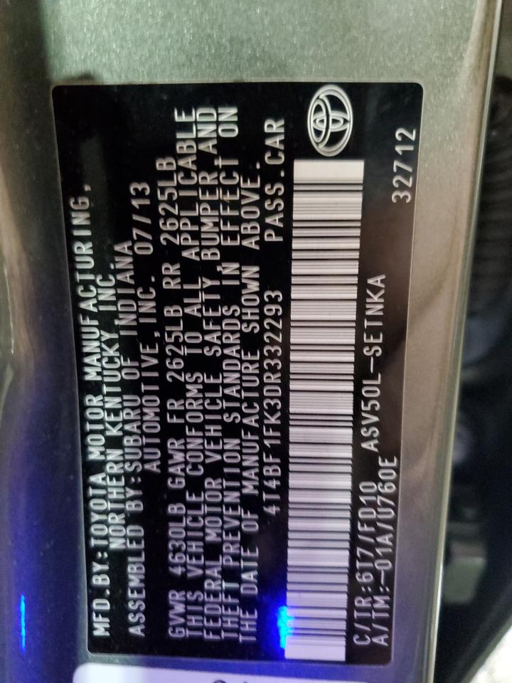 Колір СірийЦиліндри 4VIN 4T4BF1FK3DR332293Стан Заводиться та їде (перевірено)Ушкодження Передня або задня