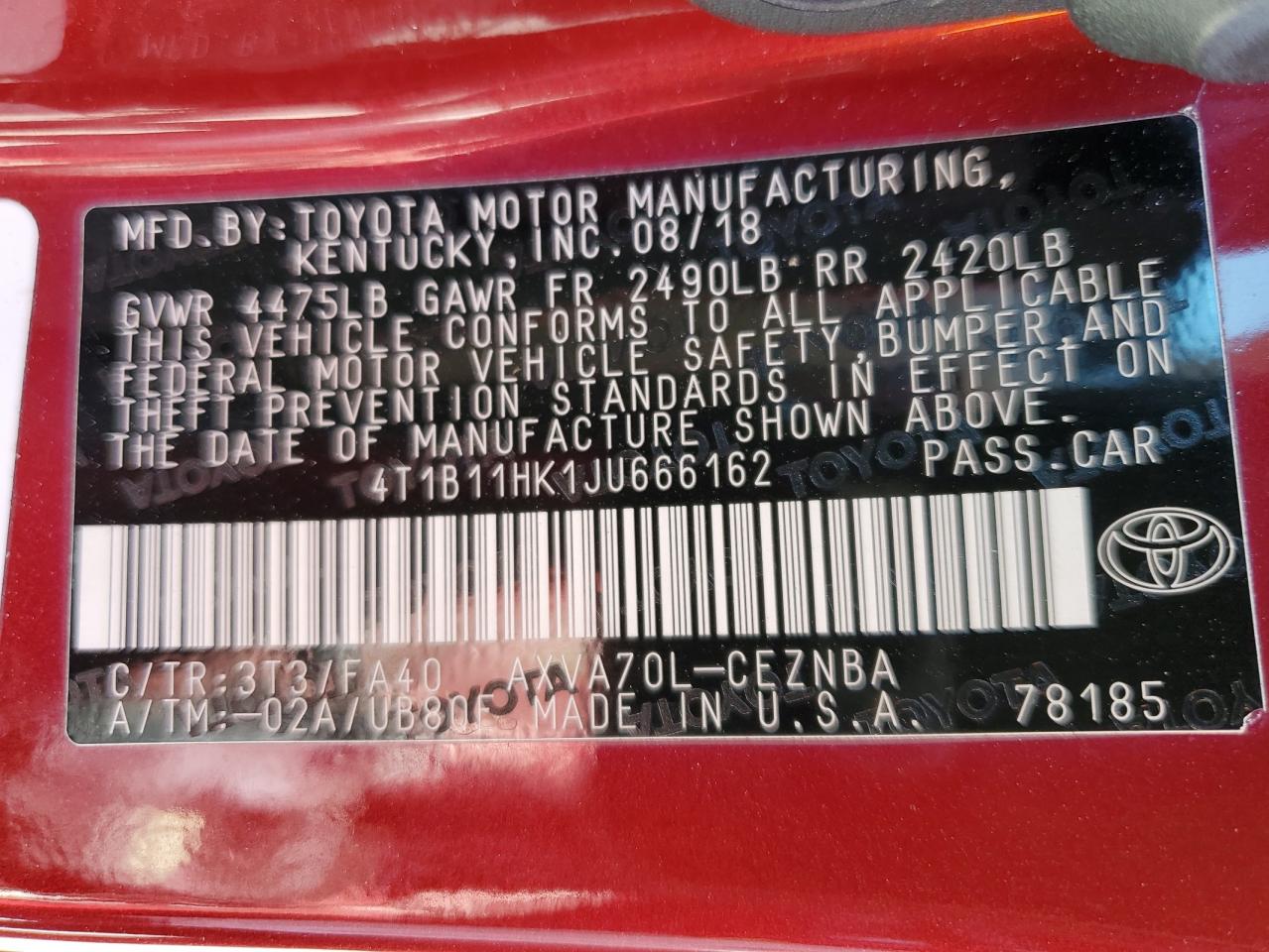 2018 TOYOTA CAMRY - 4T1B11HK1JU666162, колір - Червоний, 2.5, Бензин, із США