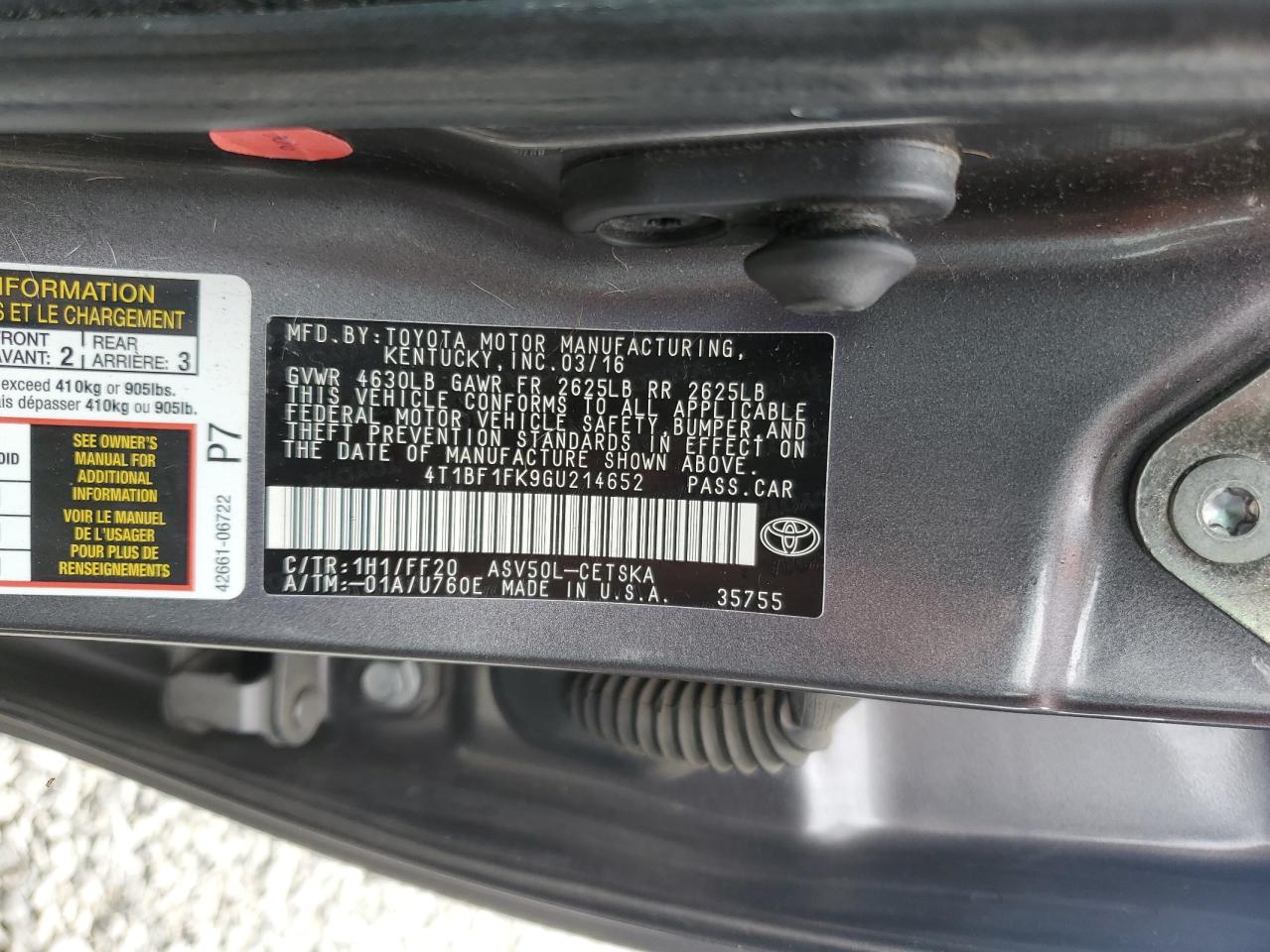 Колір СірийЦиліндри 4VIN 4T1BF1FK9GU214652Стан Заводиться та їде (перевірено)Ушкодження Передня або задняДата аукціона 2025-10-07