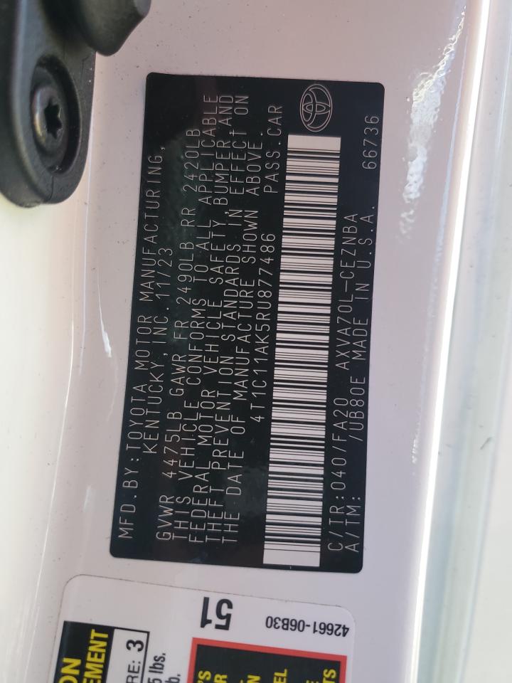 2024 TOYOTA CAMRY - 4T1C11AK5RU877486, колір - Білий, 2.5, Бензин, із США