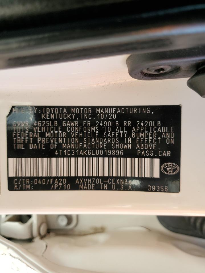 2020 TOYOTA CAMRY - 4T1C31AK6LU019896, колір - Білий, 2.5, Гібрид, із США