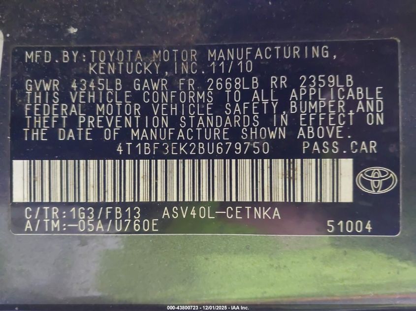 2011 TOYOTA CAMRY BASE