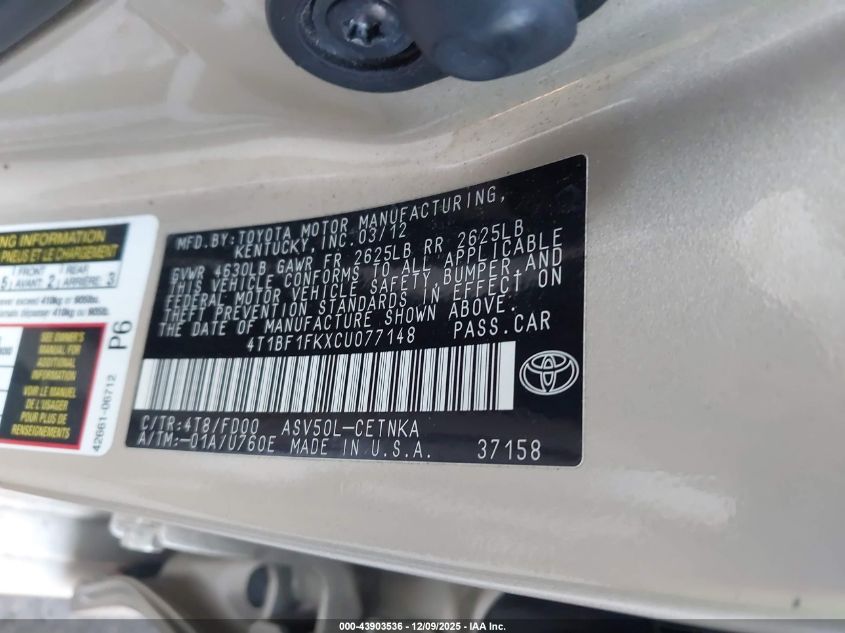 2012 TOYOTA CAMRY - 4T1BF1FKXCU077148, колір - Золотий, 2.5, Бензин, Передній привід із США