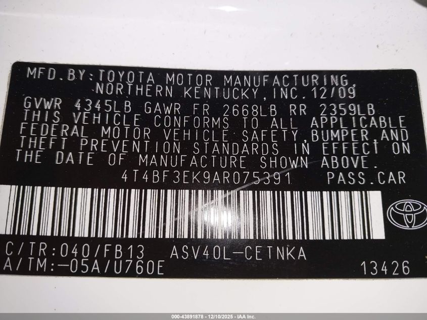 2010 TOYOTA CAMRY - 4T4BF3EK9AR075391, колір - Білий, 2.5, Бензин, Передній привід із США