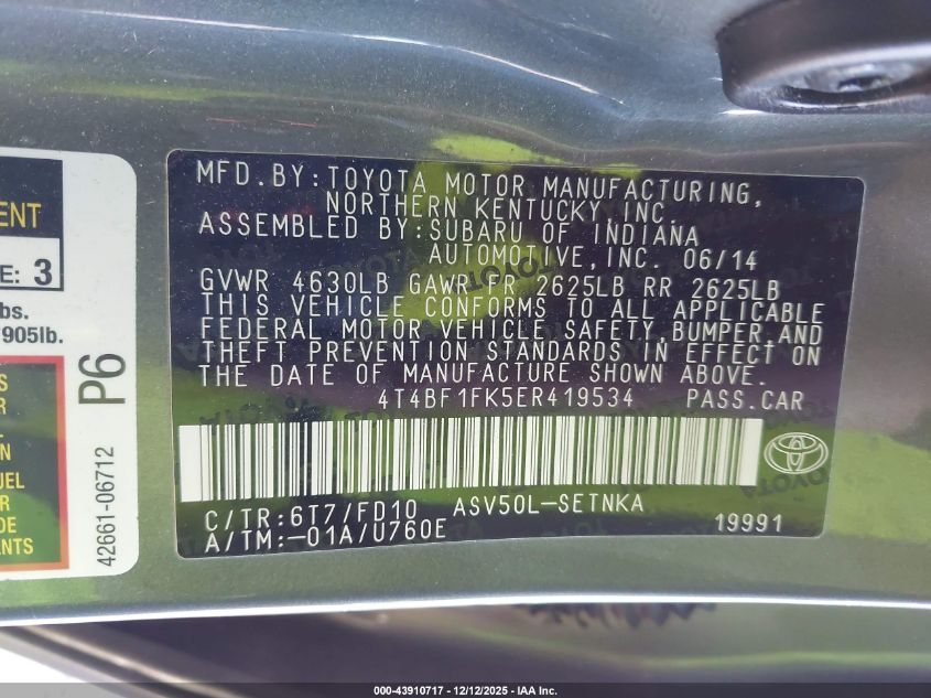 Колір СірийЦиліндри 4Привід Передній привідVIN 4T4BF1FK5ER419534Стан Заводиться та їде (перевірено)Ушкодження Передня або задня