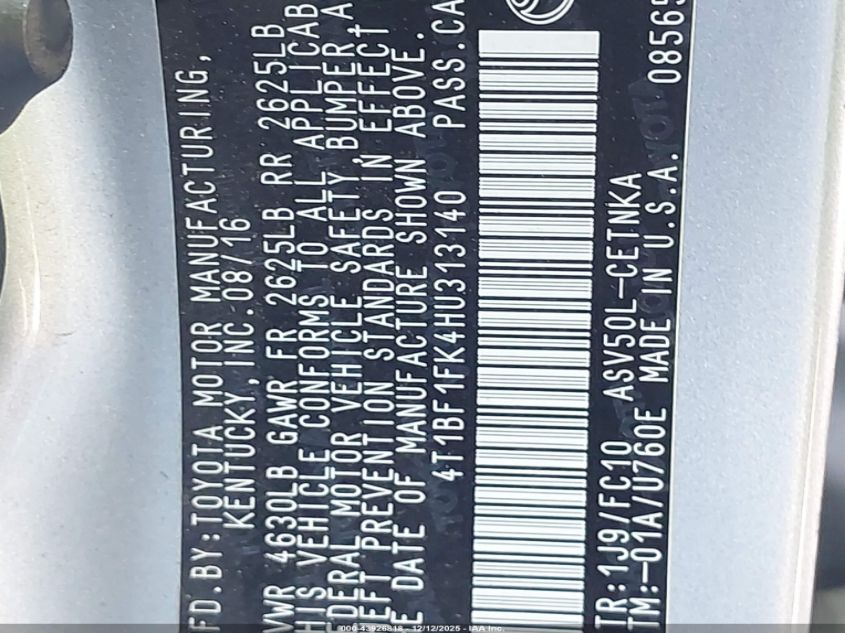 2017 TOYOTA CAMRY - 4T1BF1FK4HU313140, колір - Срібний, 2.5, Бензин, Передній привід із США