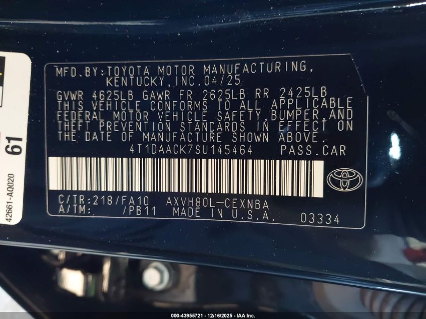 2025 TOYOTA CAMRY - 4T1DAACK7SU145464, колір - Чорний, 2.5, Гібрид, Передній привід із США