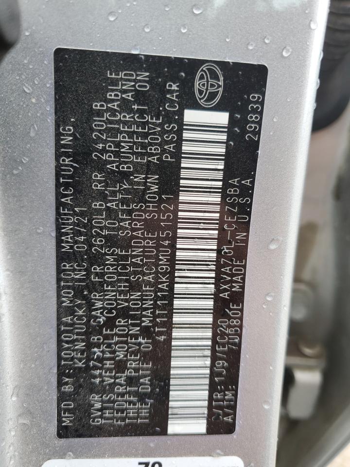 2021 TOYOTA CAMRY - 4T1T11AK9MU451521, колір - Срібний, 2.5, Бензин, із США
