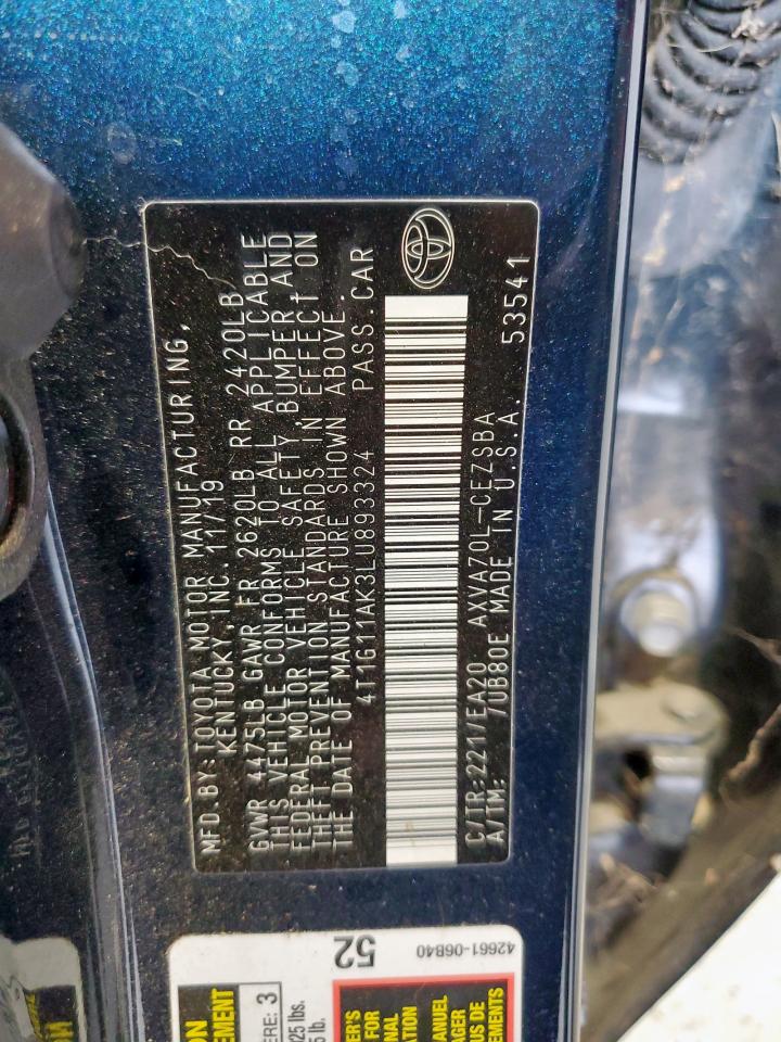 2020 TOYOTA CAMRY - 4T1G11AK3LU893324, колір - Синій, 2.5, Бензин, із США