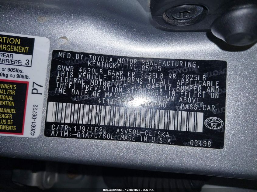 2015 TOYOTA CAMRY - 4T1BF1FK5FU084190, колір - Срібний, 2.5, Бензин, Передній привід із США