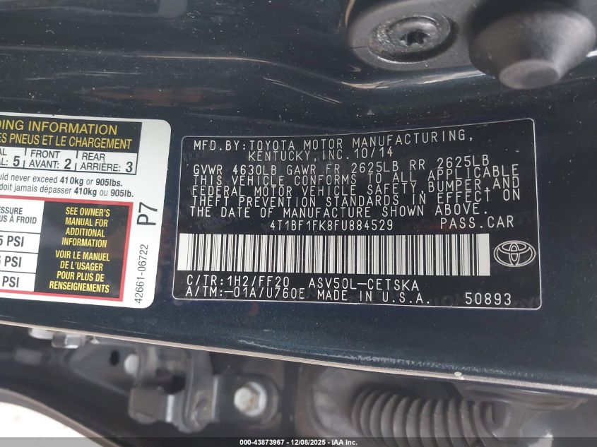 2015 TOYOTA CAMRY - 4T1BF1FK8FU884529, колір - Сірий, 2.5, Бензин, Передній привід із США