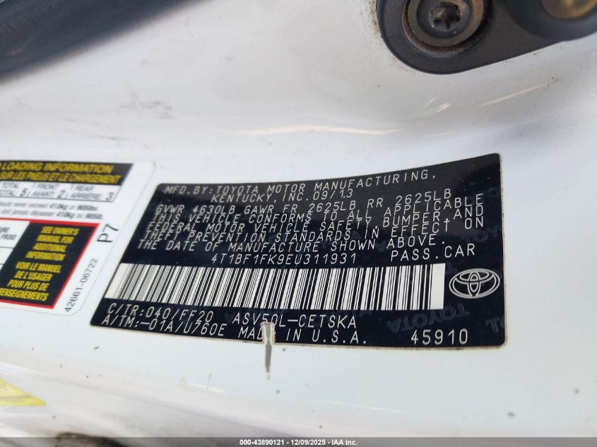 2014 TOYOTA CAMRY - 4T1BF1FK9EU311931, колір - Білий, 2.5, Бензин, Передній привід із США