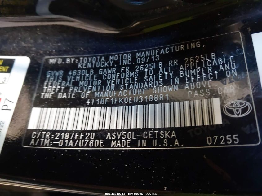 2014 TOYOTA CAMRY - 4T1BF1FK0EU318881, колір - Чорний, 2.5, Бензин, Передній привід із США