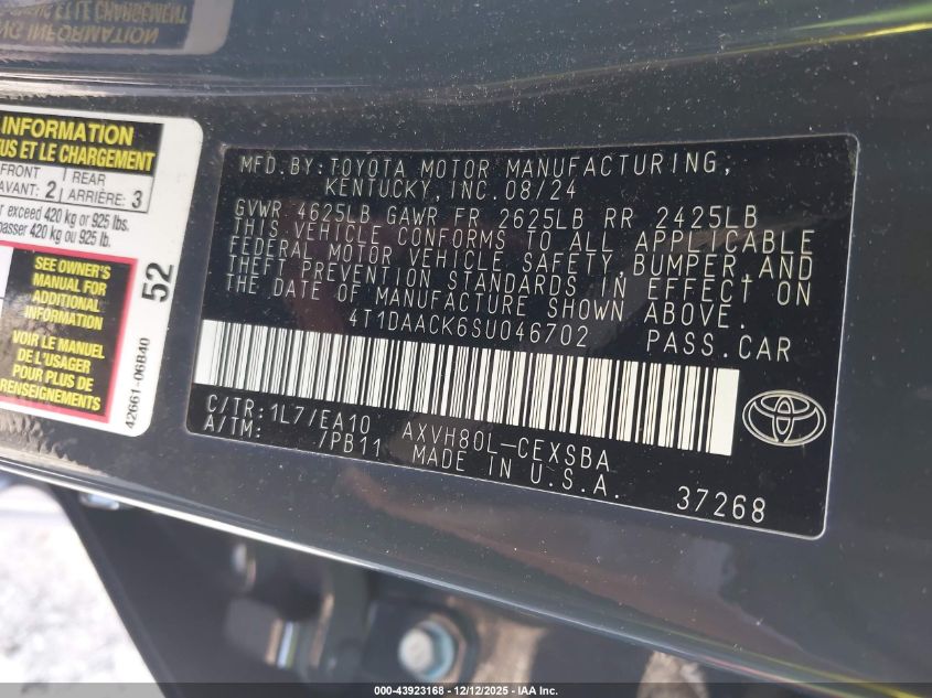 2025 TOYOTA CAMRY - 4T1DAACK6SU046702, колір - Сірий, 2.5, Гібрид, Передній привід із США