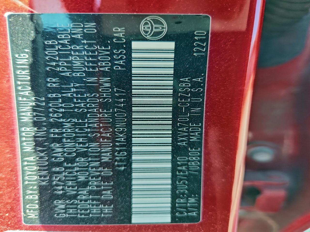 2022 TOYOTA CAMRY - 4T1G11AK9NU074417, колір - Червоний, 2.5, Бензин, із США