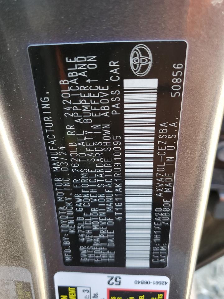 2024 TOYOTA CAMRY - 4T1G11AK1RU910095, колір - Деревне вугілля, 2.5, Бензин, із США