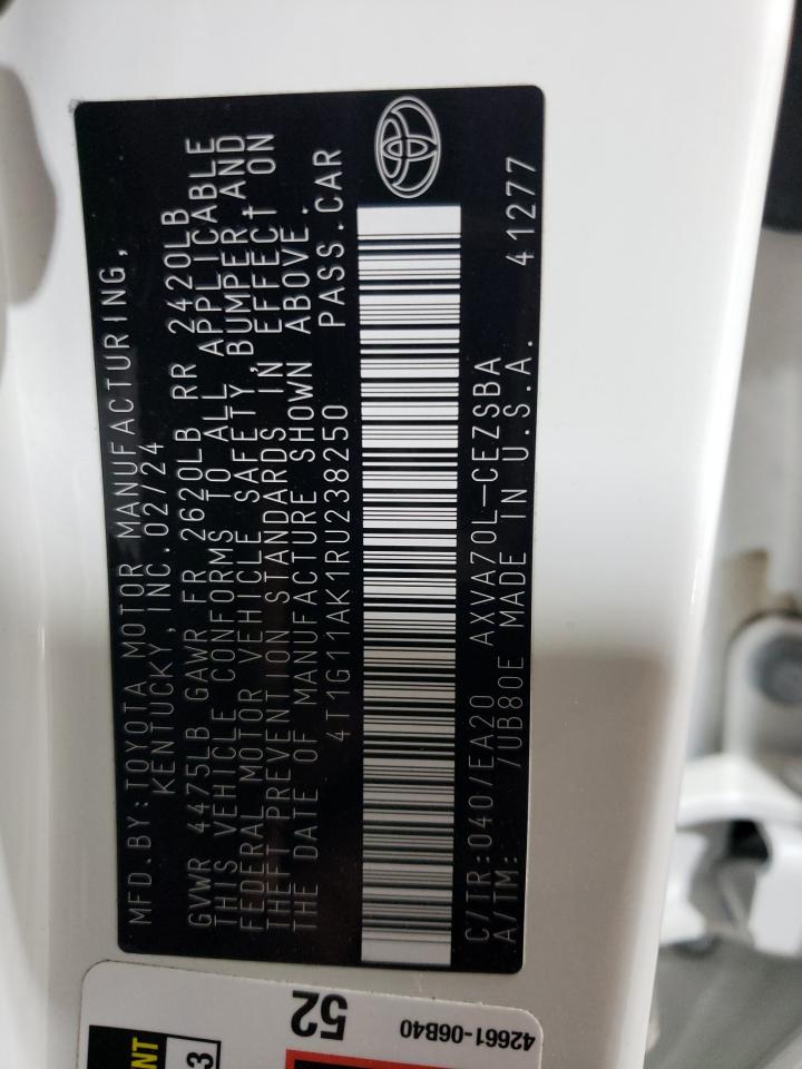 2024 TOYOTA CAMRY - 4T1G11AK1RU238250, колір - Білий, 2.5, Бензин, із США